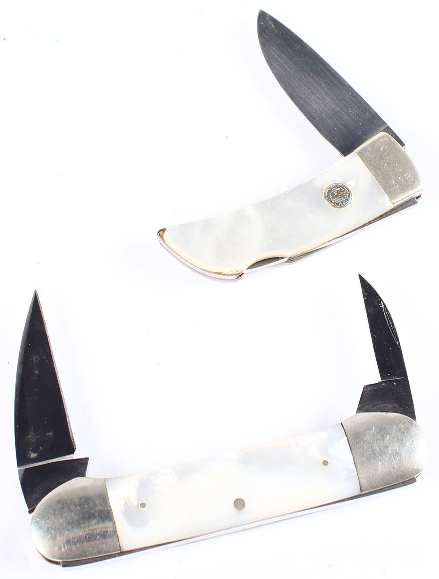 Lot of 2 folding knives, Boker and Queen knives, both have Mother of Pearl grips . Grade: Excellent - Value: 40 to 150