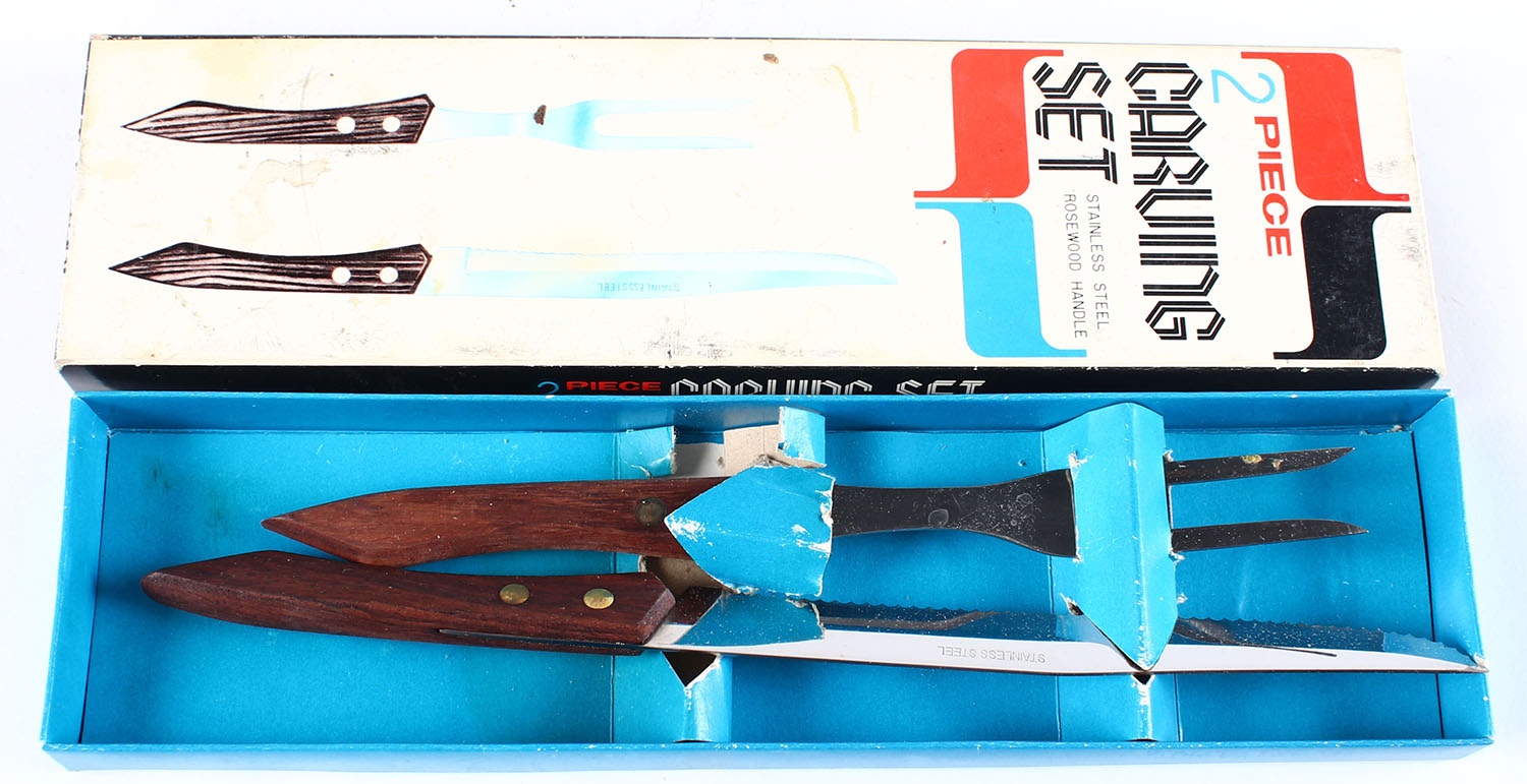 2 piece Carving Set in original box, all solid! Grade: Excellent - Value: 2 to 50
