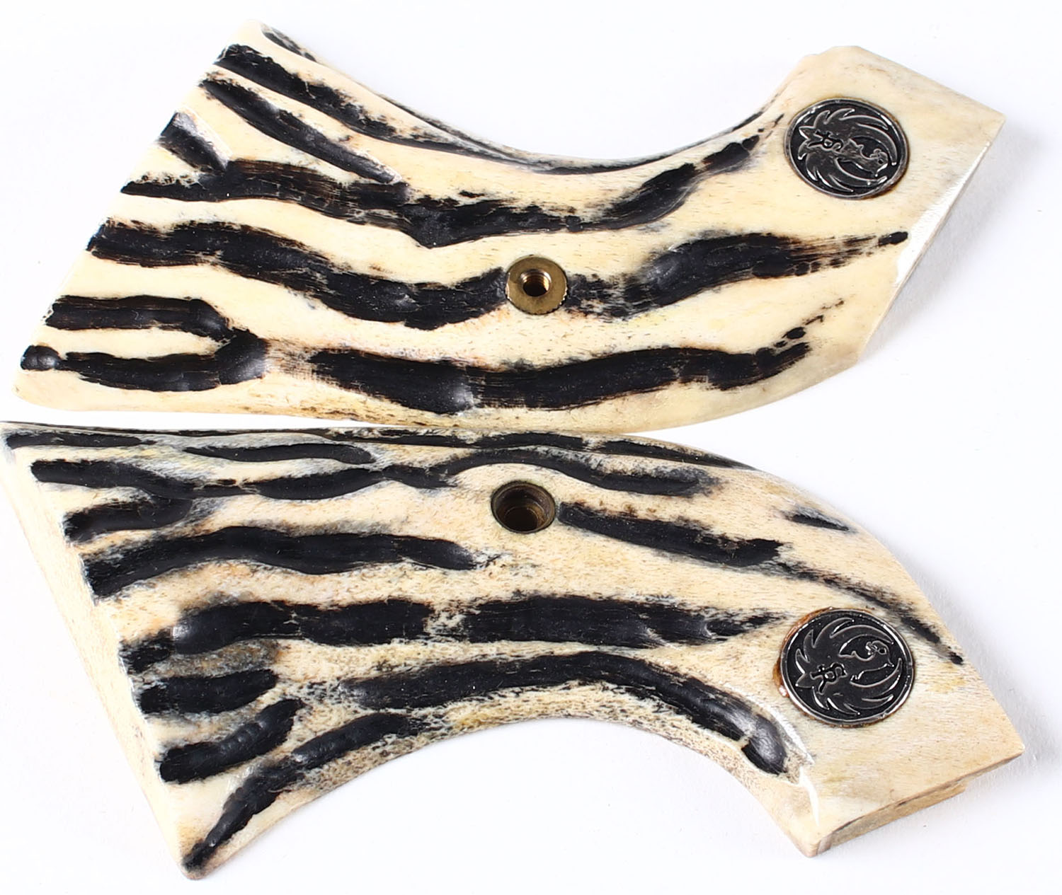 Ruger Bone pistol grips for revolver, carved to mimic stag. Grade: Excellent - Value: 30 to 90