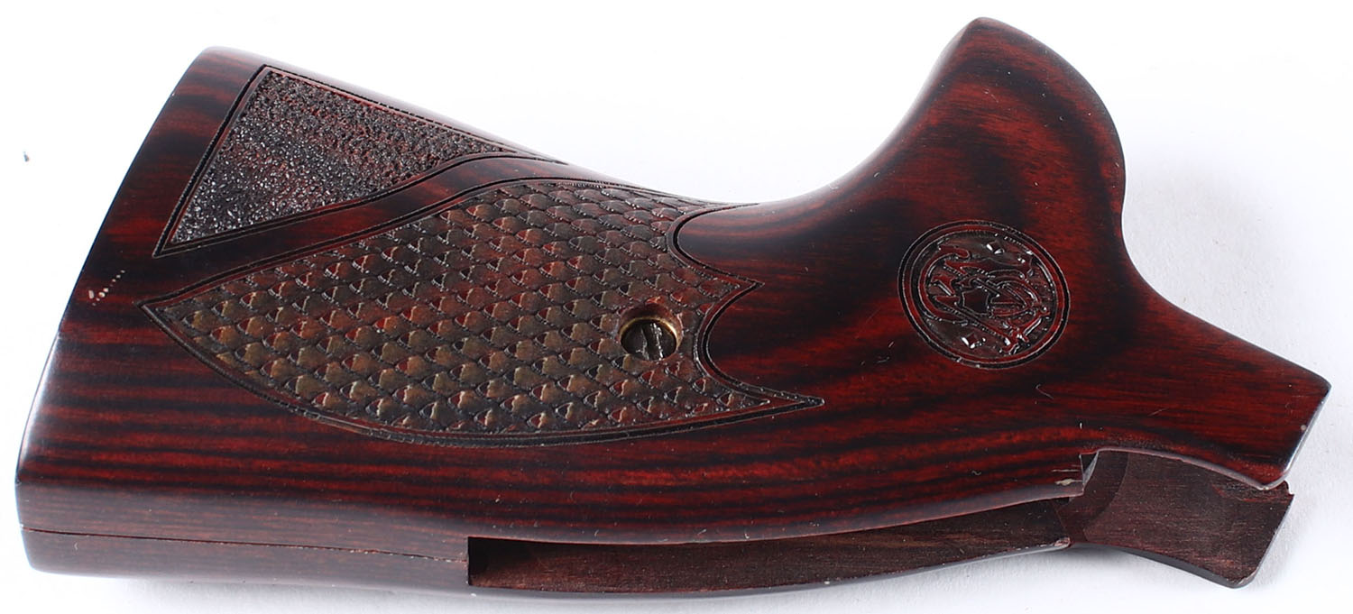S&W Revolver Checkered wood Grips, has screw. Grade: Excellent - Value: 2 to 40