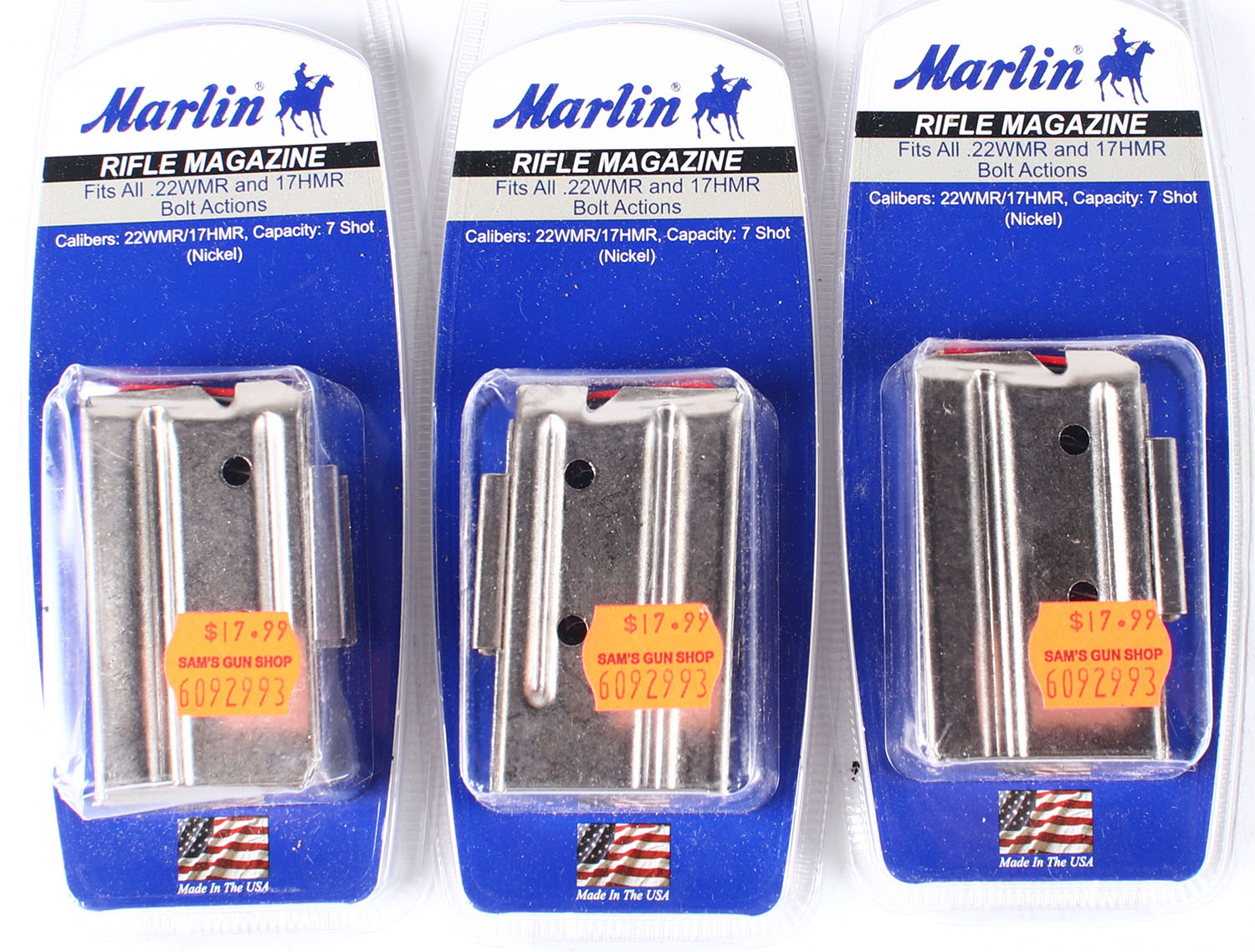 Lot of 3 Marlin .22WMR/.17HMR 7 rd mags. Grade: Excellent ++ - Value: 20 to 60