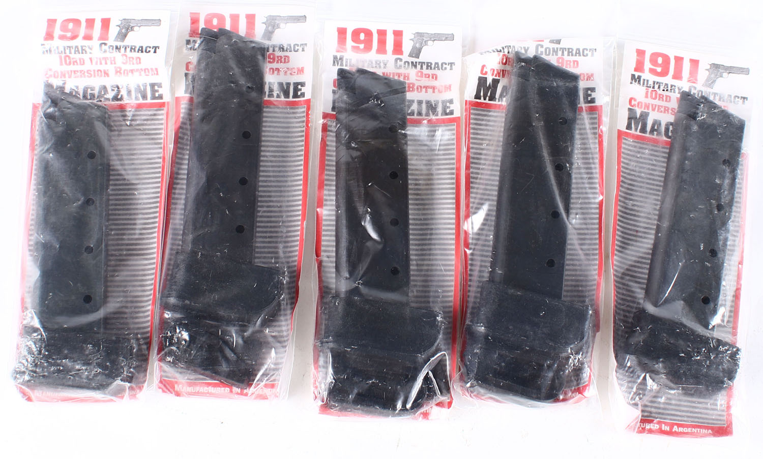 Lot of 5 1911 10 rd pistol mags. Grade: Excellent ++ - Value: 50 to 100