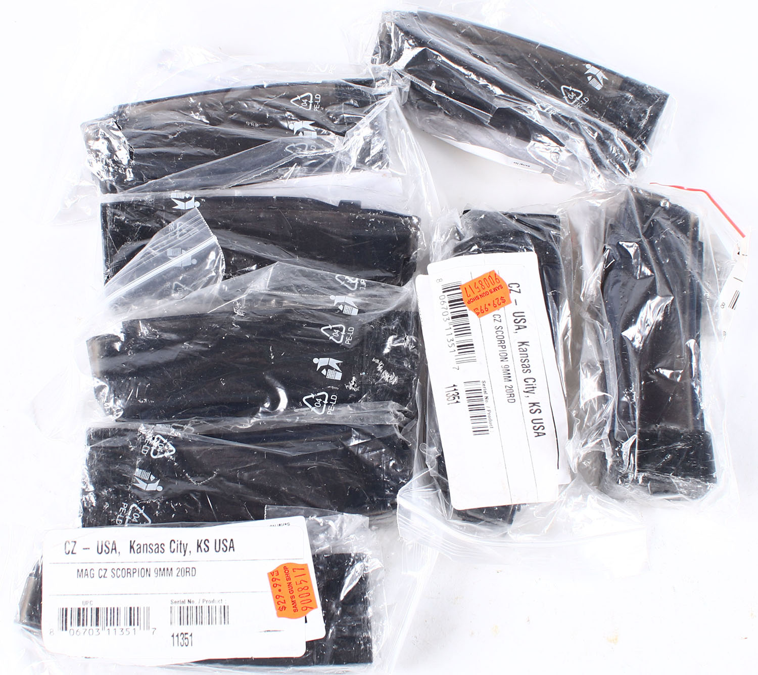 Lot of 8 CZ scorpion 9mm 20 rd mags. Grade: Excellent - Value: 50 to 100
