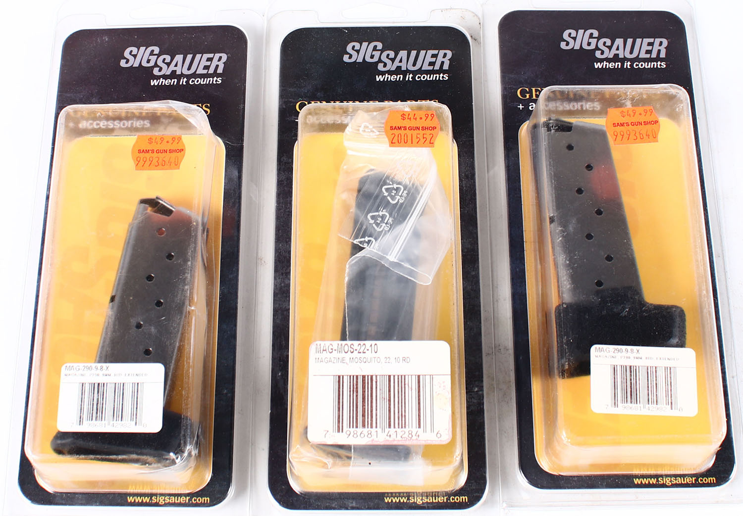 Lot of 3 Sig Sauer pistol mags, (2) 9mm 8 rd mag and (1) .22 cal 10 rd mag. Grade: Excellent - Value: 20 to 60