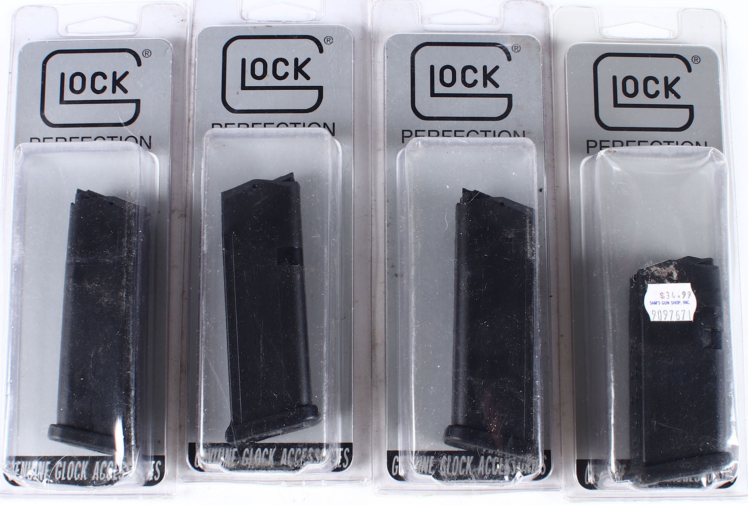Lot of 4 Glock pistol mags, G19 15 rd mag. Grade: Excellent - Value: 30 to 90