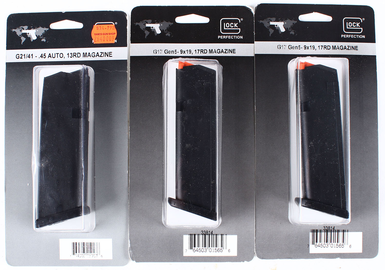 Lot of 3 Glock pistol mags, G17 gen5 9x19 17 rd. Grade: Excellent - Value: 20 to 60