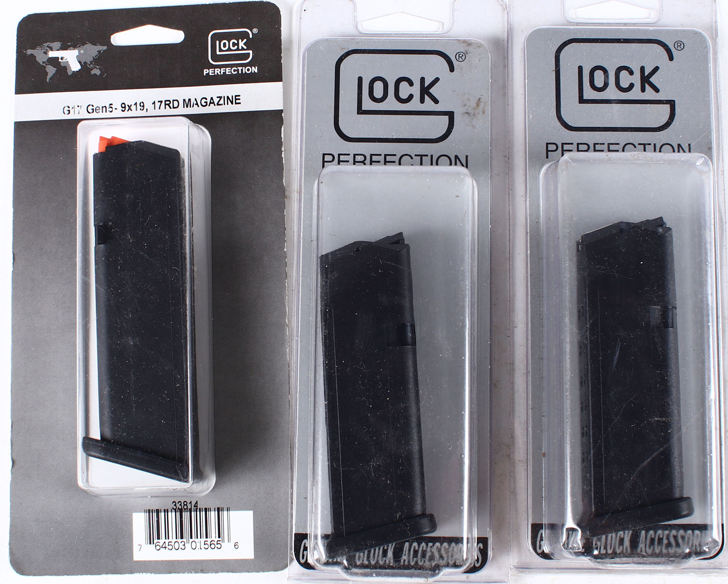 Lot of 3 Glock pistol mags, (2) G19 15 rd, G17 9x19 17 rd. Grade: Excellent - Value: 16 to 50