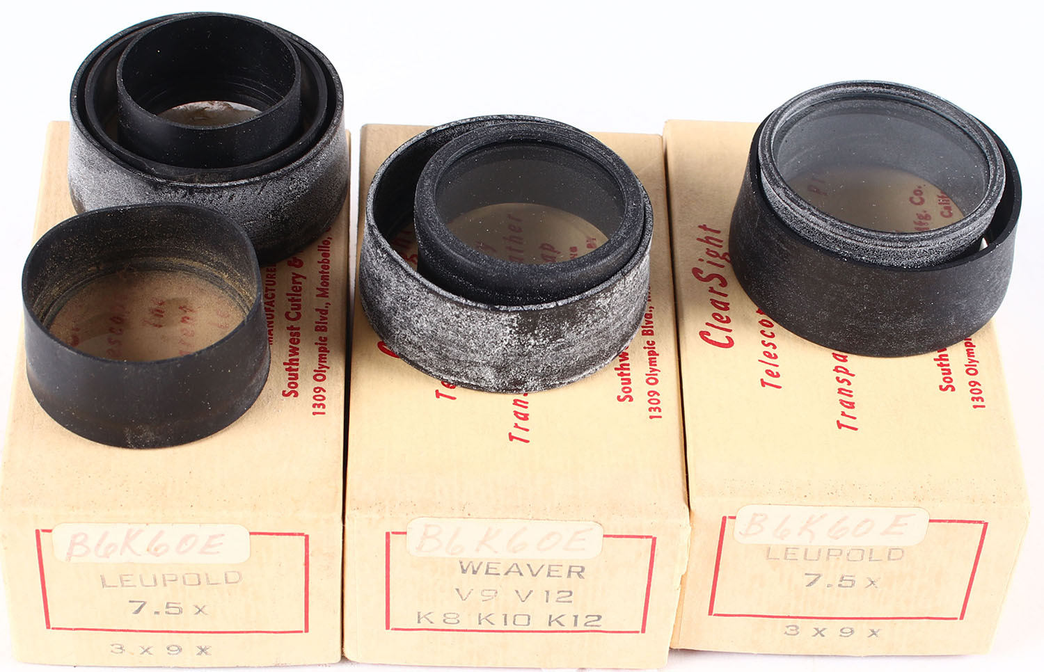 Lot of 3 clear sight telescope lens caps, Leupold7.5x and Weaver V9 V12, K8 K10 and K12. Grade: Excellent - Value: 10 to 40