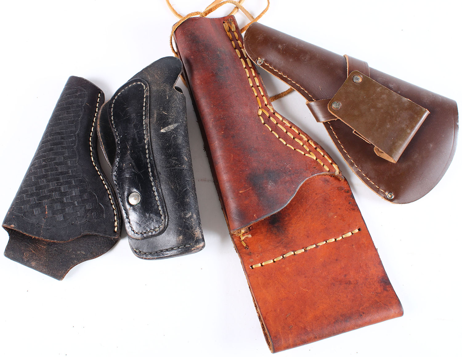 Lot of leather pistol holsters. Grade: Excellent - Value: 20 to 80