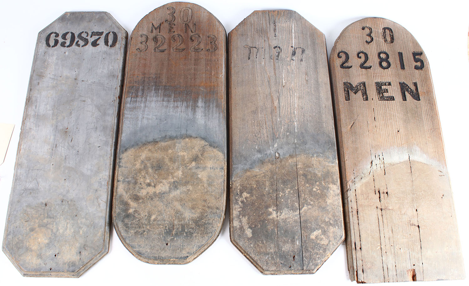 Lot of 4 Civil war grave marker for unknown solider, wood, 30'' OAL. Grade: Very Good - Value: 4 to 40
