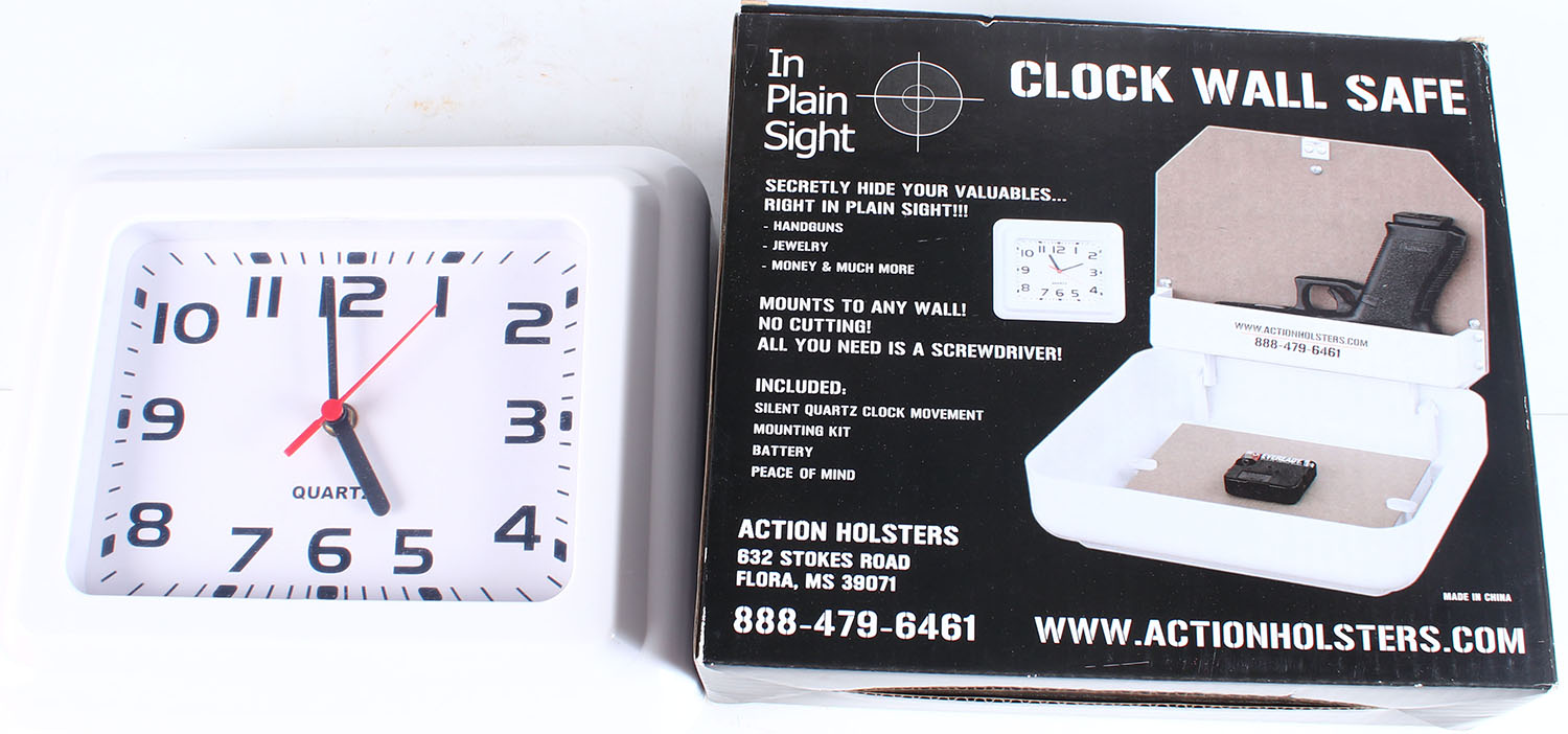 Gun wall safe clock, NIB. Grade: Excellent ++ - Value: 10 to 50