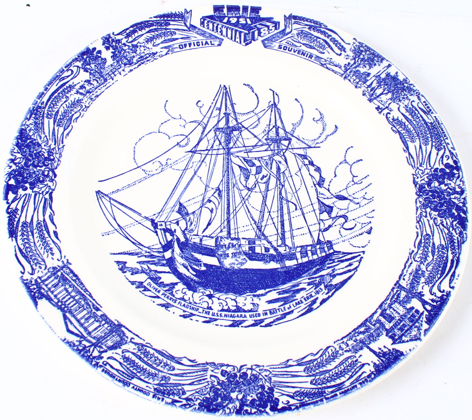 Souvenir plate Erie Centennial 1851-1951, 10'' plate. Grade: Excellent ++ - Value: 4 to 40