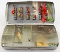 7468 Small tackle box with fly fishing flies, line, hooks & one lure... $7 3 Auction is complete