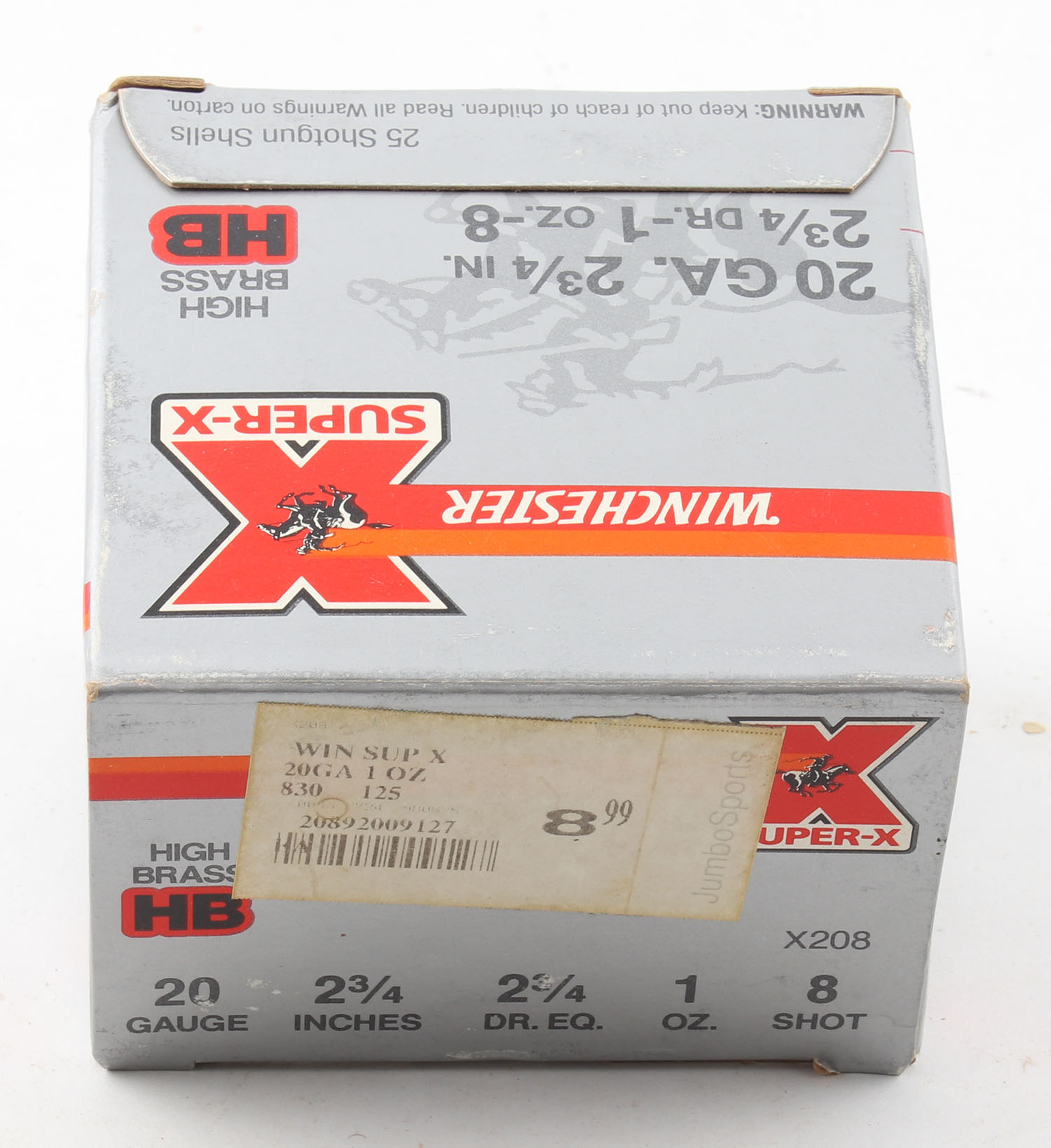 Winchester, Super-X, 20ga., 1pc., Full, shot size 8, 2 3/4'', box is solid, plastic shells are excellent. Grade: Excellent - Value: 10 to 30