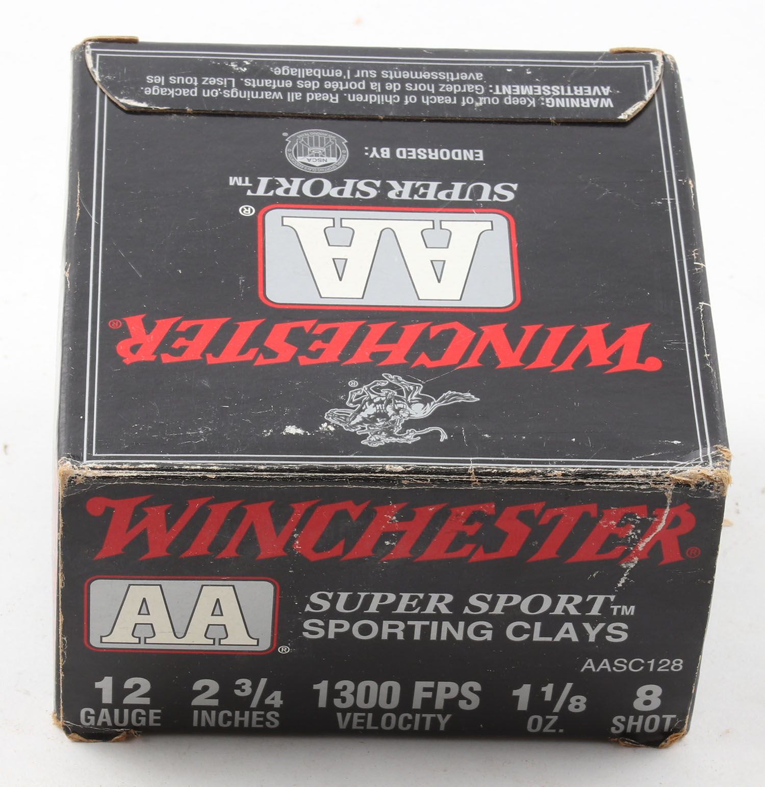 Winchester, Double A, Super Sport, 12ga., 1pc., shot size 8, Full, multi-colored box, box is very solid, plastic shells are excellent. Grade: Excellent - Value: 10 to 30