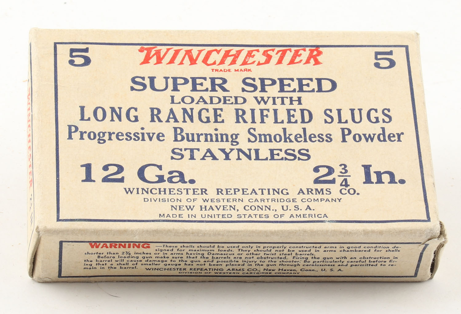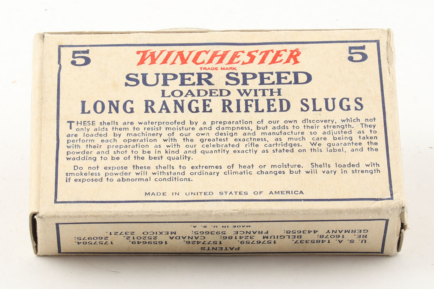 Winchester, Super Speed, 12ga., 1pc., Full, shot size Rifled Slug, multi-colored box. Grade: Excellent - Value: 10 to 30