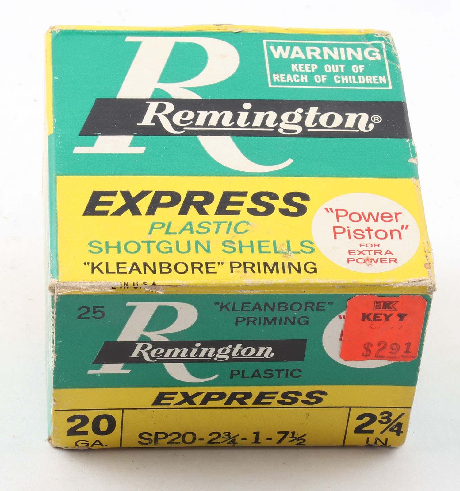 Remington, Express, 20ga., 1pc., Full, shot size 7 1/2, multi-colored box, plastic shells are excellent. Grade: Excellent - Value: 10 to 30