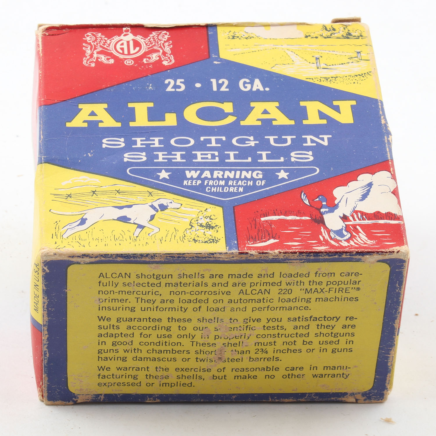 Alcan, Smokeless Powder, Ultramax, 12ga., 2 3/4'', 1pc., Full of mixed shots, shot size 8CH, multi-colored box, box is solid with great colors, plastic shells are excellent. Grade: Very Good - Value: 8 to 30