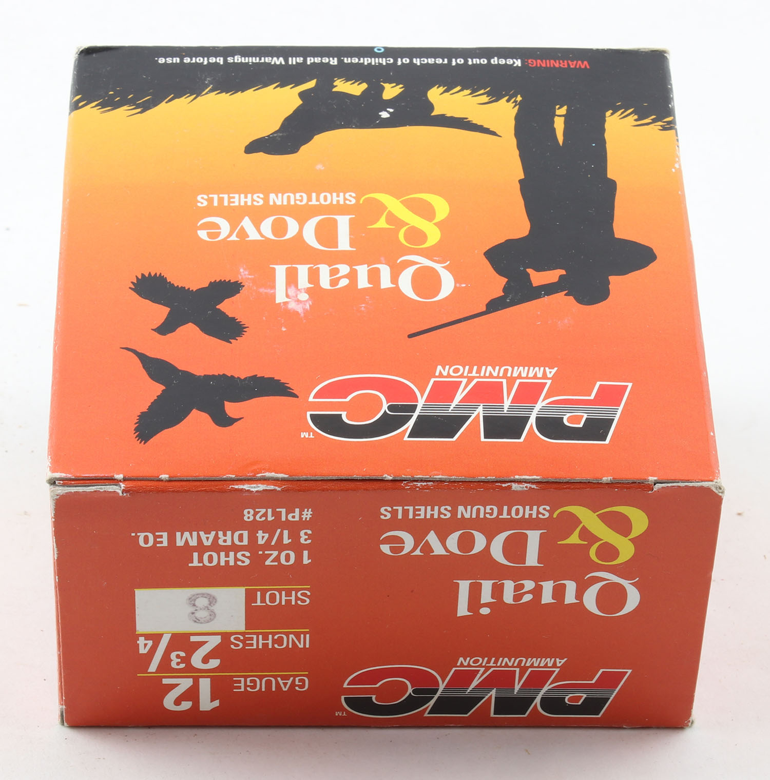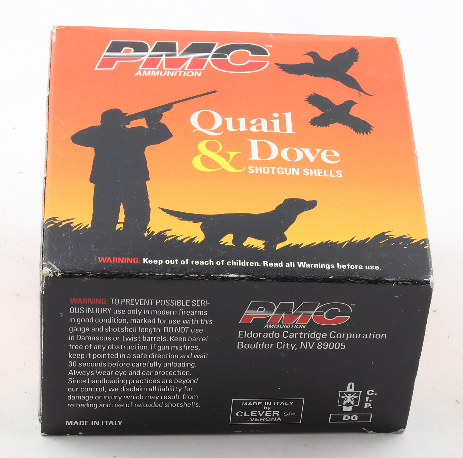 PMC, Quail & Dove, 12ga., Full, 1pc., shot size 8, 2 3/4'', multi-colored box, box is very solid with minty colors, plastic shells are excellent. Grade: Excellent ++ - Value: 10 to 40