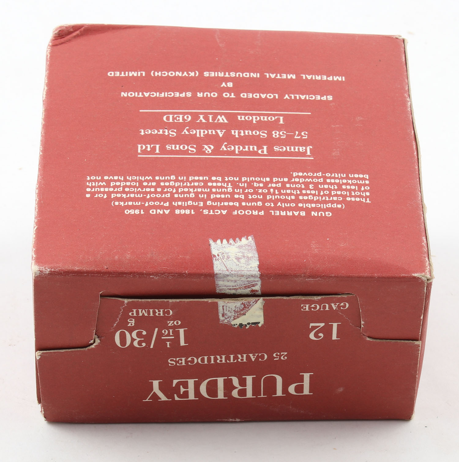 | Eley, Purdey London, 12ga., 1pc., Full, shot size 7, red box wit...