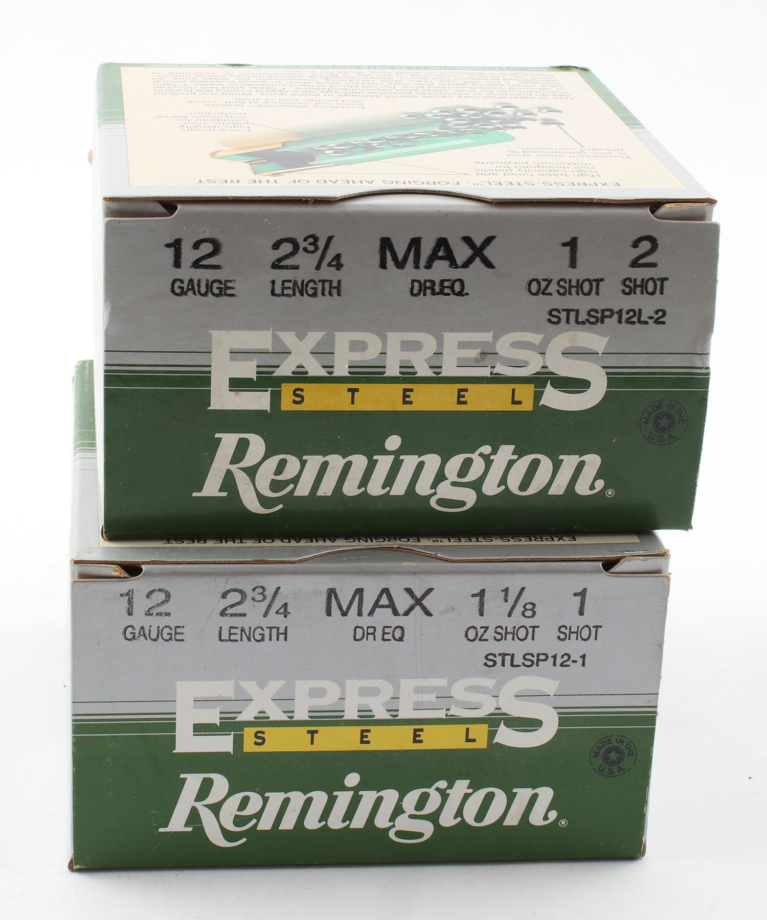 Lot of 2 Remington, 12ga., 1pc., Appears Full, shot size 1 & 2, multi-colored boxes. Grade: Excellent - Value: 10 to 40