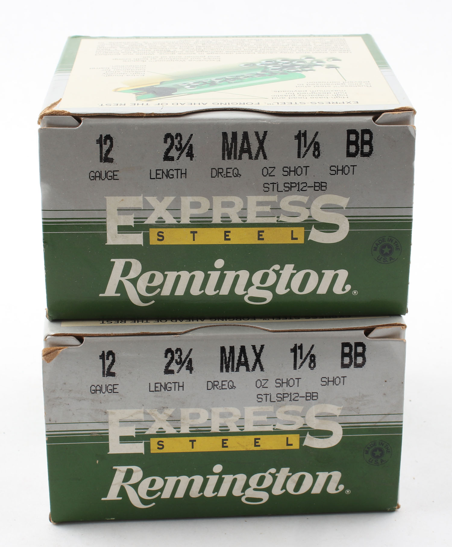 Lot of 2 Remington, 12ga., 1pc., Appears Full, shot size BB, multi-colored boxes. Grade: Excellent - Value: 10 to 40