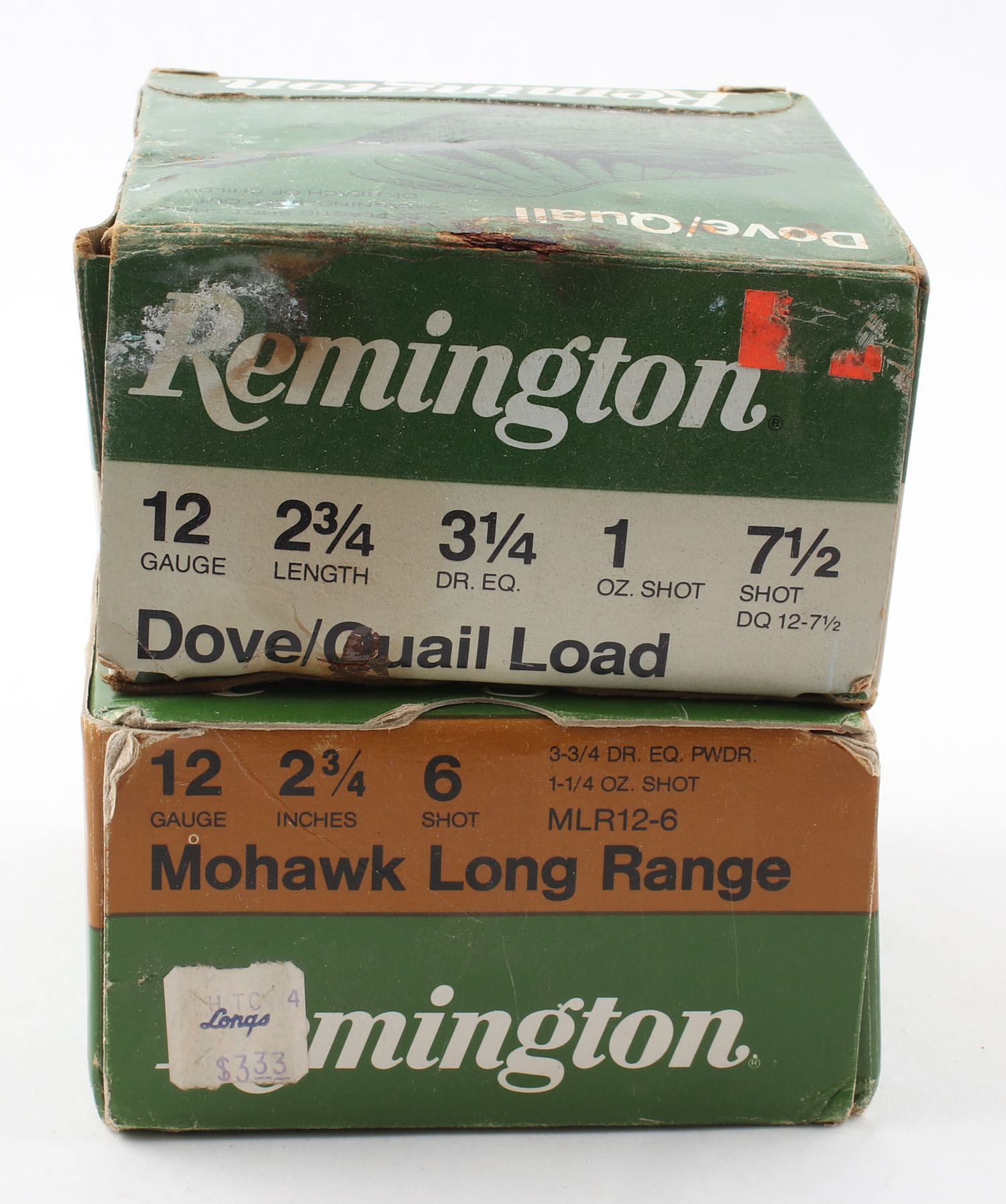 Lot of 2 Remington, 12ga., 1pc., Appears Full, shot size 6 & 7 1/2, multi-colored boxes. Grade: Good ++ - Value: 10 to 40
