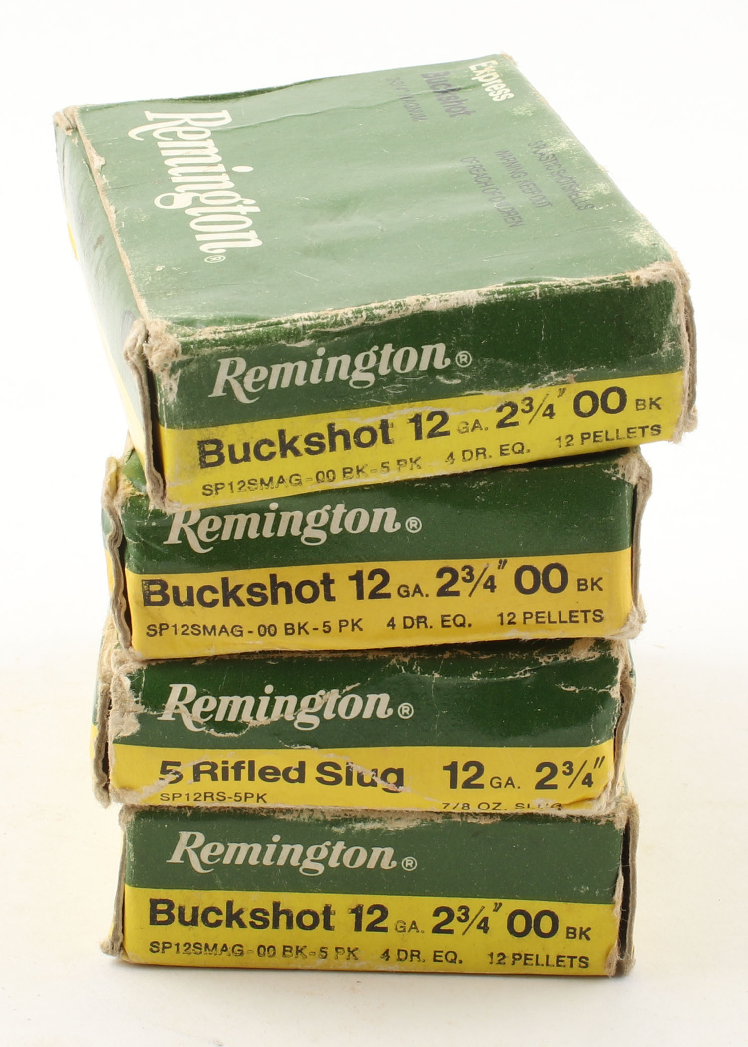 Lot of 4 Remington, 12ga., 1pc., shot size Rifled Slug & 00 Buck, Appears Full, multi-colored boxes. Grade: Good ++ - Value: 10 to 40