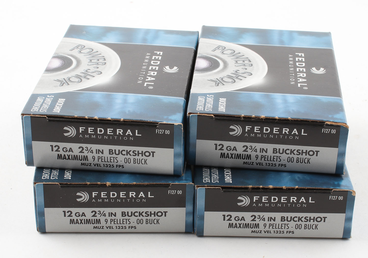 Lot of 4 Federal, 12ga., 1pc., Appears Full, shot size 00BUCK, multi-colored boxes. Grade: Excellent ++ - Value: 10 to 40