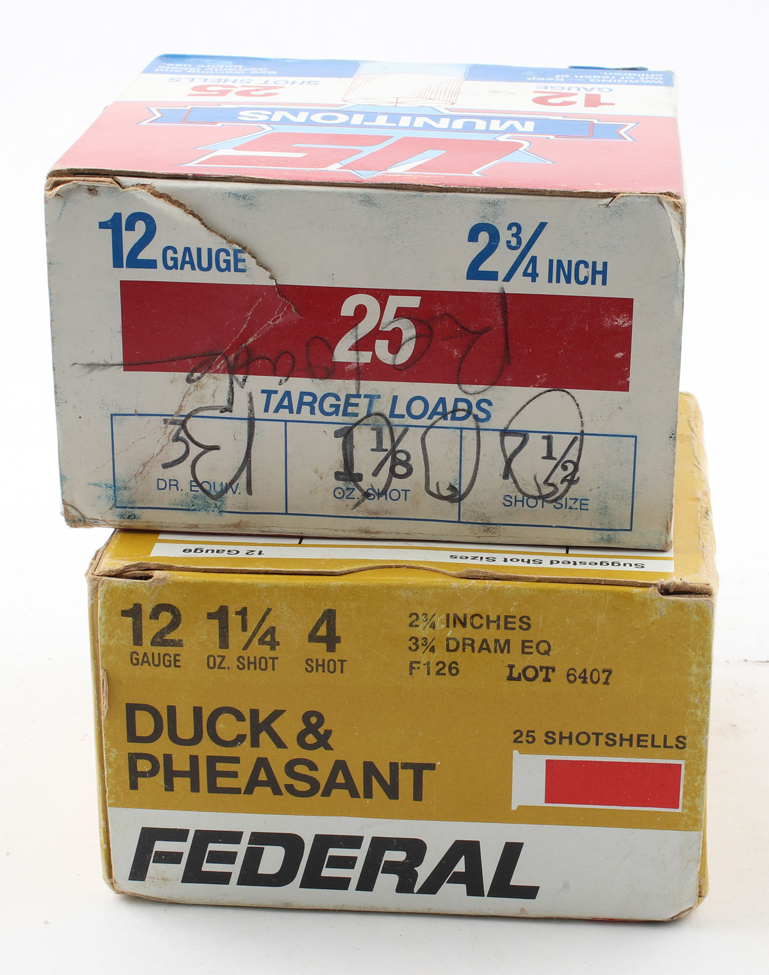 Lot of 2, Mixed Manufacture, 12ga., Appears Full, shot size 4 & 7 1/2, Shotshell boxes. Grade: Very Good + - Value: 10 to 30