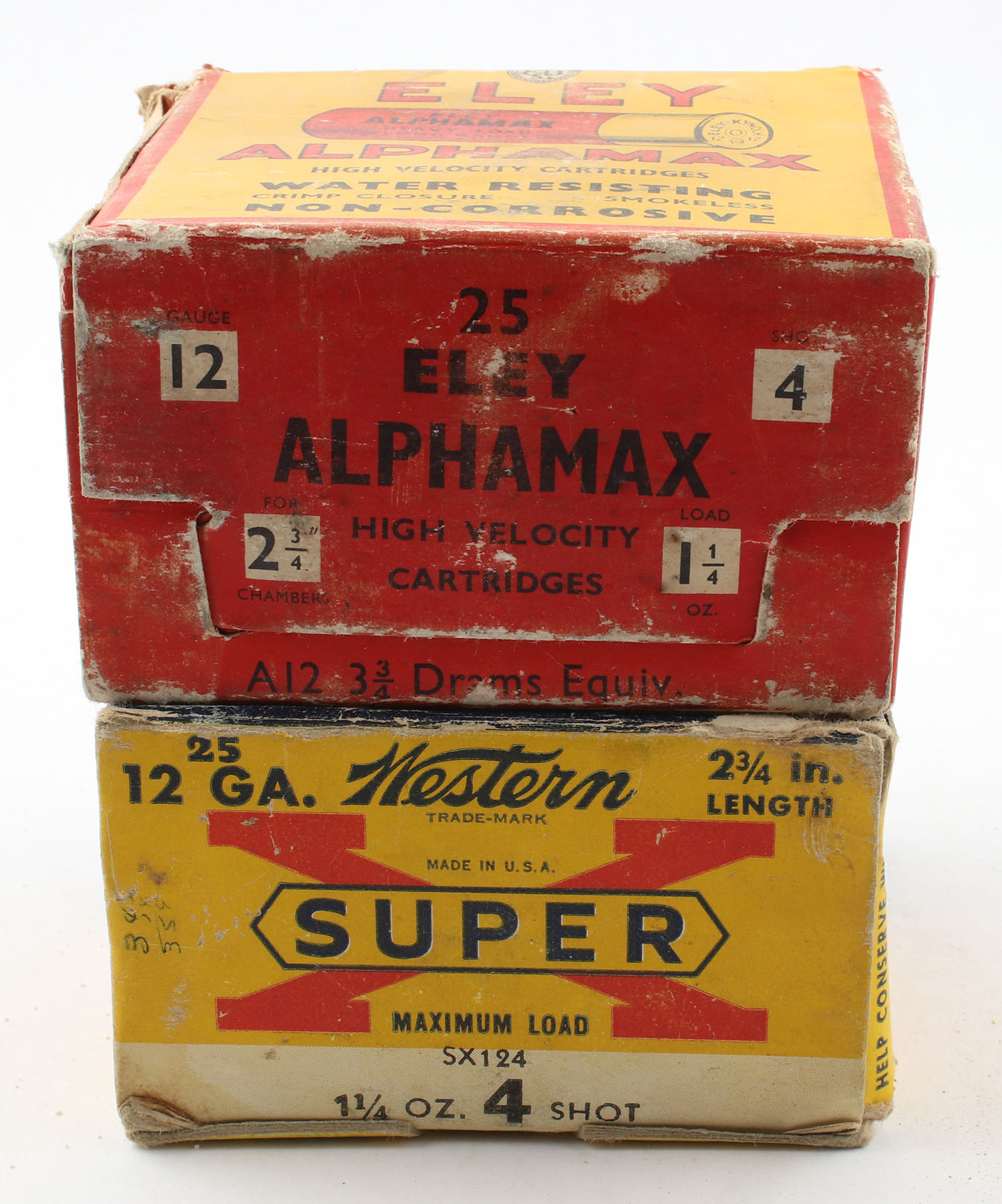 Lot of 2, Mixed Manufacture, 12ga., Appears Partial, shot size 4, Shotshell boxes. Grade: Good ++ - Value: 10 to 30