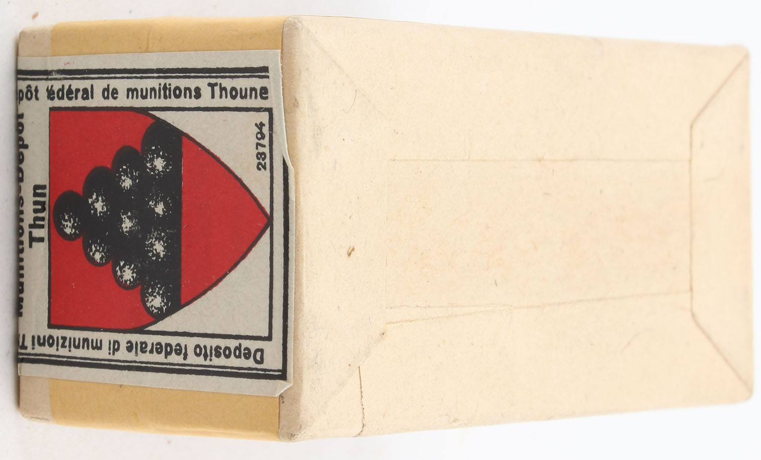 Winchester, ''Lesmok'' Rifle Cartridges, .22 Winchester Rim Fire, RR: WRA-159 WRF-32c, FULL & SEALED, 2pc. Buff box with green top & yellow side sealing labels, Swiss tax stamp on right end, box is near mint with minty color, only very minor age soiling, corners are sharp, edges are crisp, labels are intact. Grade: Excellent ++ - Value: 120 to 180