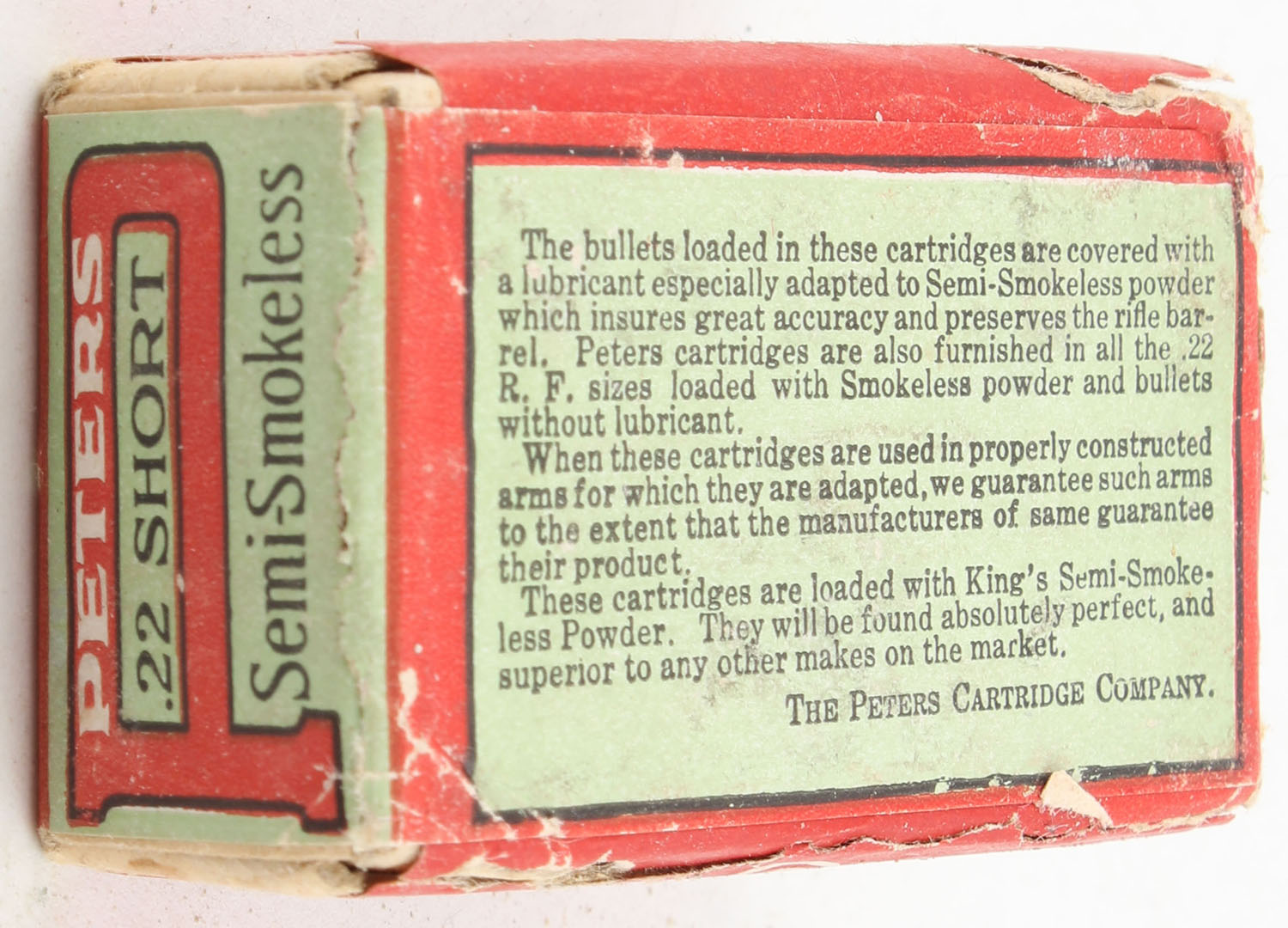 | Peters, R.F. Rifle Cartridges, .22 Short, Semi-Smokeless Powder,...