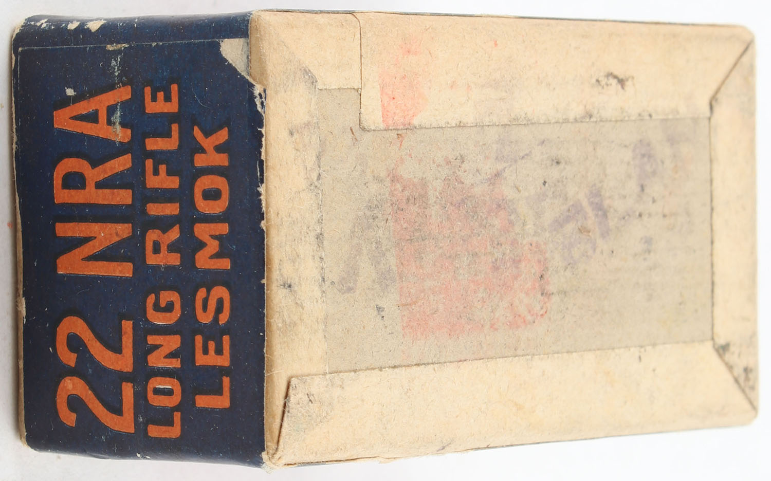 U.S., NRA, .22 Long Rifle, Lesmok, RHWeb: US-51 LR-3a, FULL & SEALED, 2pc. Buff box with blue/orange top & side sealing labels, box is solid with excellent color, very minor edge & corner wear, labels are intact. Grade: Excellent ++ - Value: 20 to 30