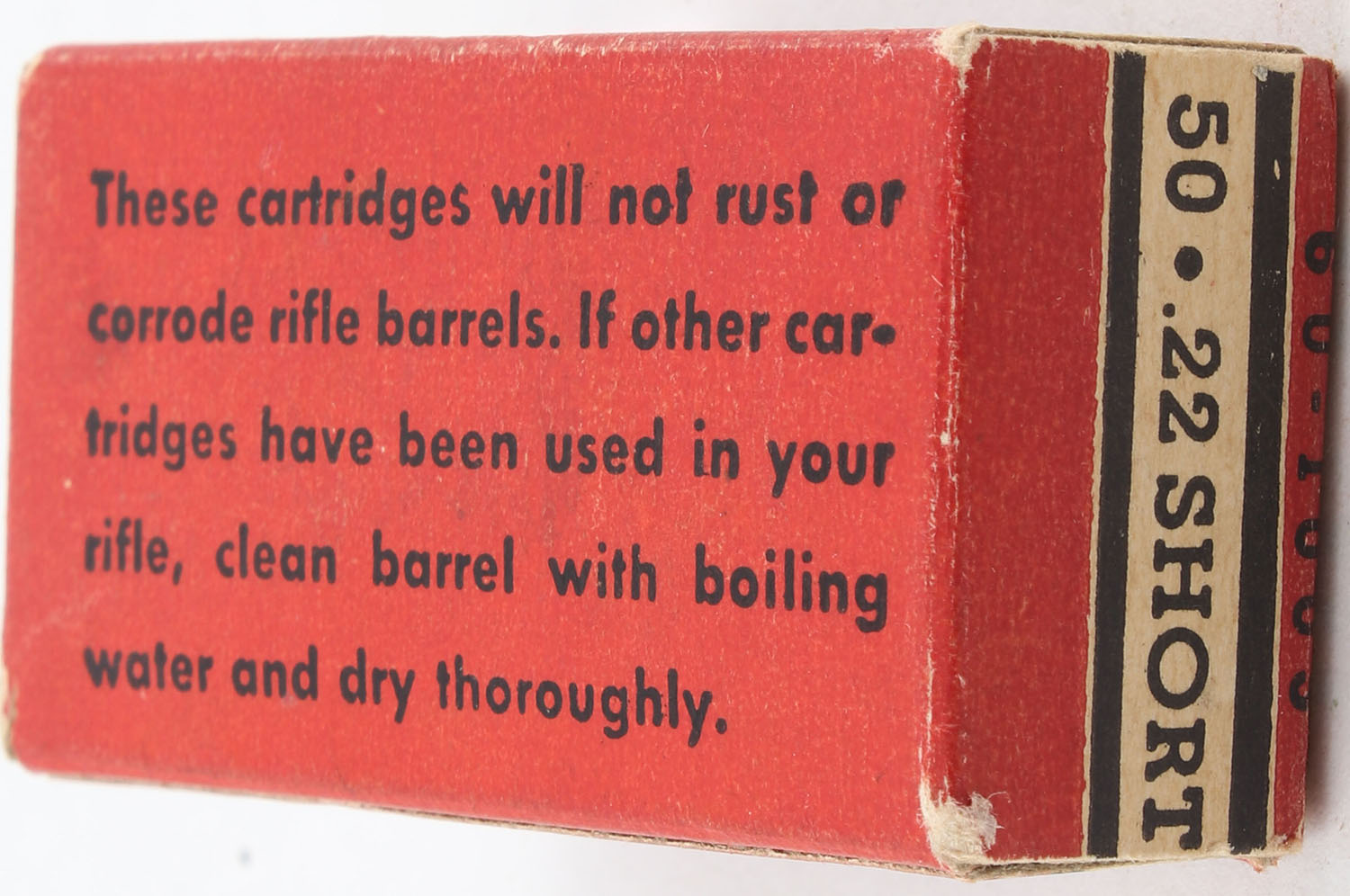 Wards, Cleanfire, .22 Short, Lead Lubricated, RHWeb: MW-4A S-1 (EP-1 H/S), Full, 1pc. Red white & black box, box is solid with excellent color, very minor age soiling & corner wear, edges are mostly crisp, end flaps are solid, ammo is excellent. Grade: Excellent - Value: 10 to 15