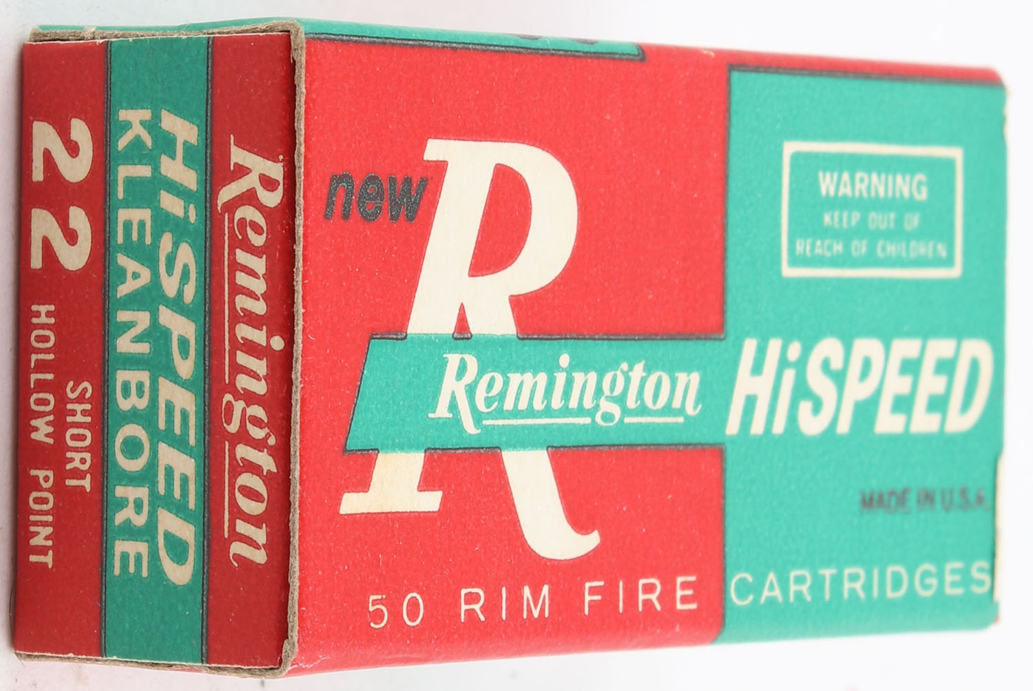 Remington, HiSpeed, .22 Short Hollow Point, RHWeb: REM-16 S-3, Full, 1pc. Red green & white box, box is MINT with minty color, corners are sharp, edges are crisp, end flaps are solid, ammo is minty. Grade: MINT - Value: 10 to 15