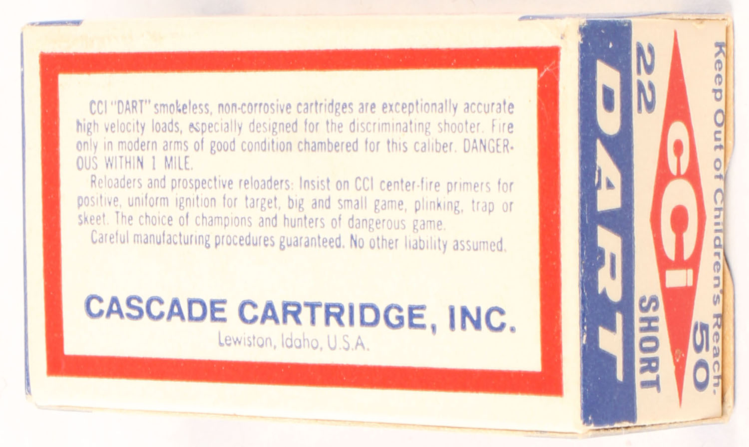 | CCi, Dart, .22 Short, RHWeb: CCI-1 S-1a, Full, 1pc. White red &...