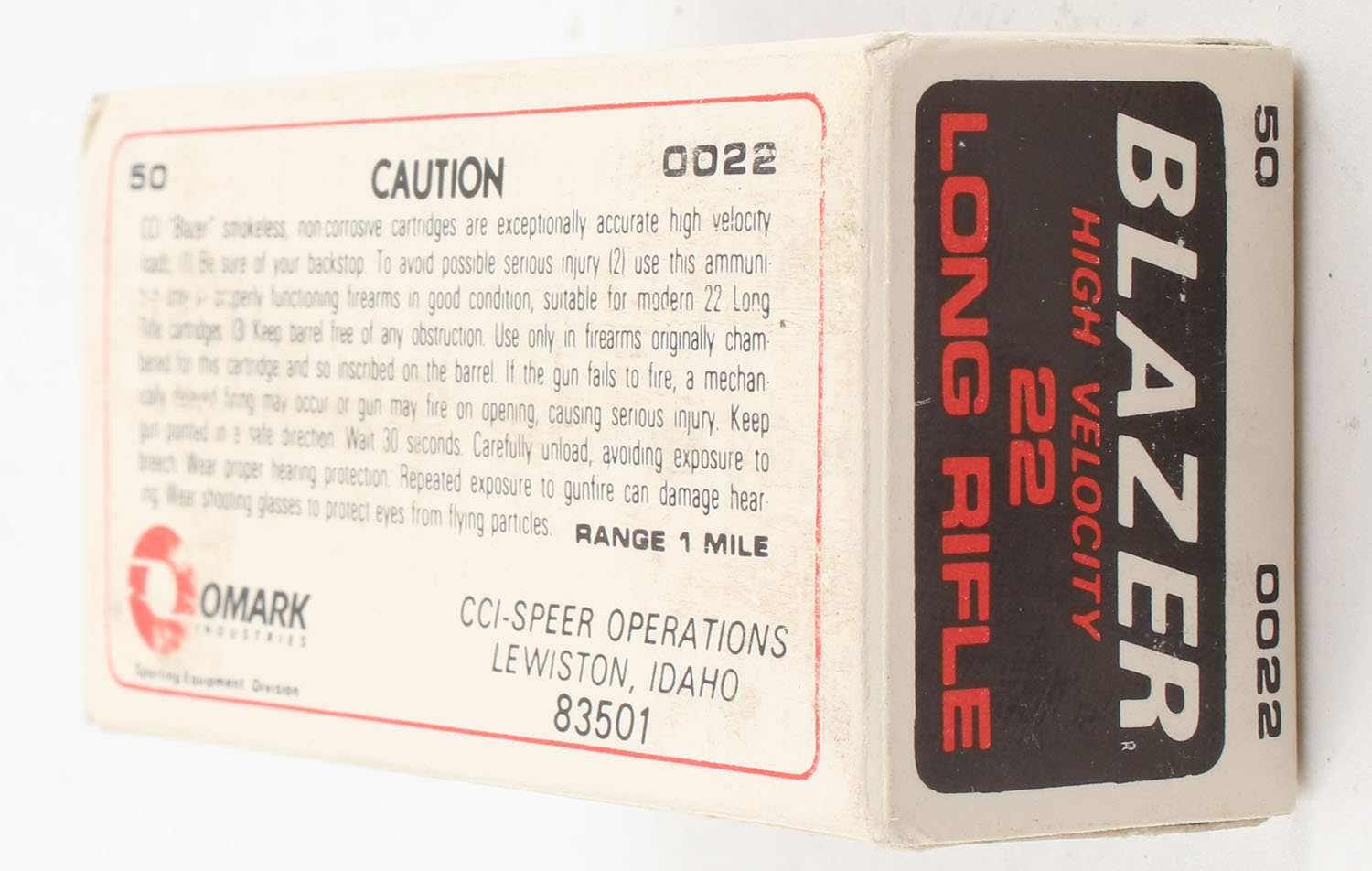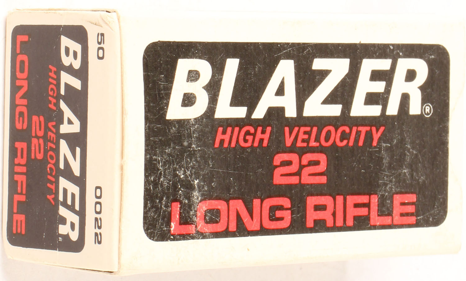 CCi, Blazer, .22 Long Rifle, High Velocity, RHWeb: CCI-7 LR-3, Full, 1pc. Black white & red box, box is solid with excellent color, very minor shelf wear, corners are mostly sharp, edges are crisp, end flaps are solid, ammo is minty. Grade: Excellent - Value: 2 to 10