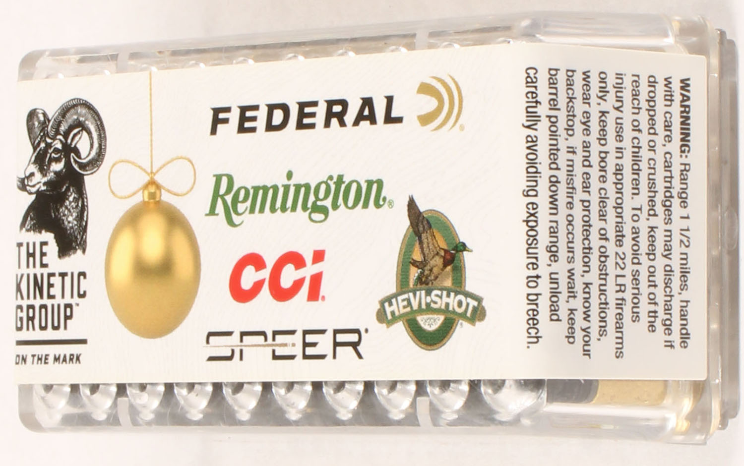 CCi, Merry Christmas 2024, .22 Long Rifle, Standard Velocity, FULL & SEALED, 2pc. Clear plastic tray with label featuring a snowy winter mountain cabin, tray is clean & clear, label is intact with minty color. Grade: MINT - Value: 50 to 75