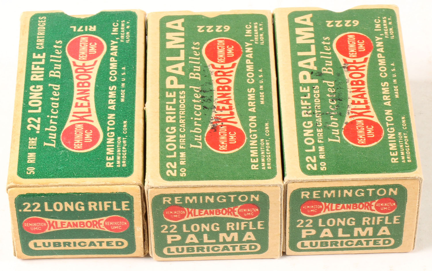 Remington, lot of (3) boxes, (2) boxes appear full, R17L box is partial with incorrect ammo. Grade: Excellent - Value: 12 to 18