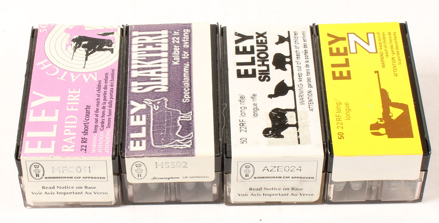 Eley, Lot of (4) boxes, all appear full. Grade: Excellent + - Value: 16 to 24