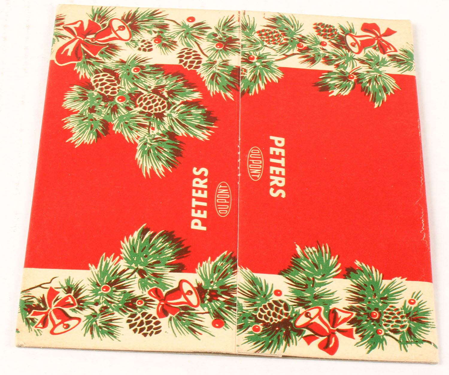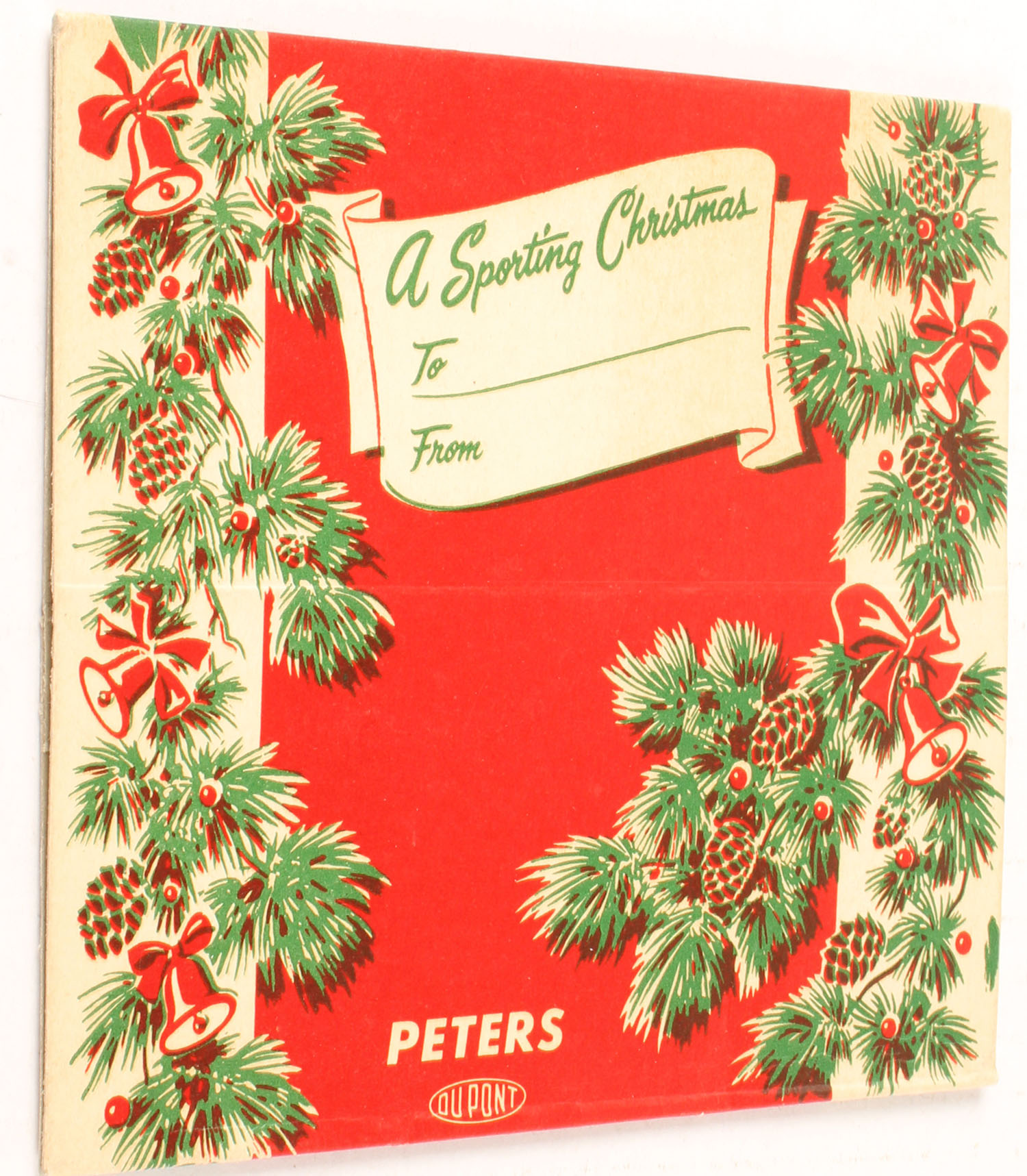 Peters, A Sporting Christmas, New old stock Christmas sleeve for .22 bricks, sleeve is solid with excellent color, very minor age soiling. Grade: Excellent - Value: 60 to 90