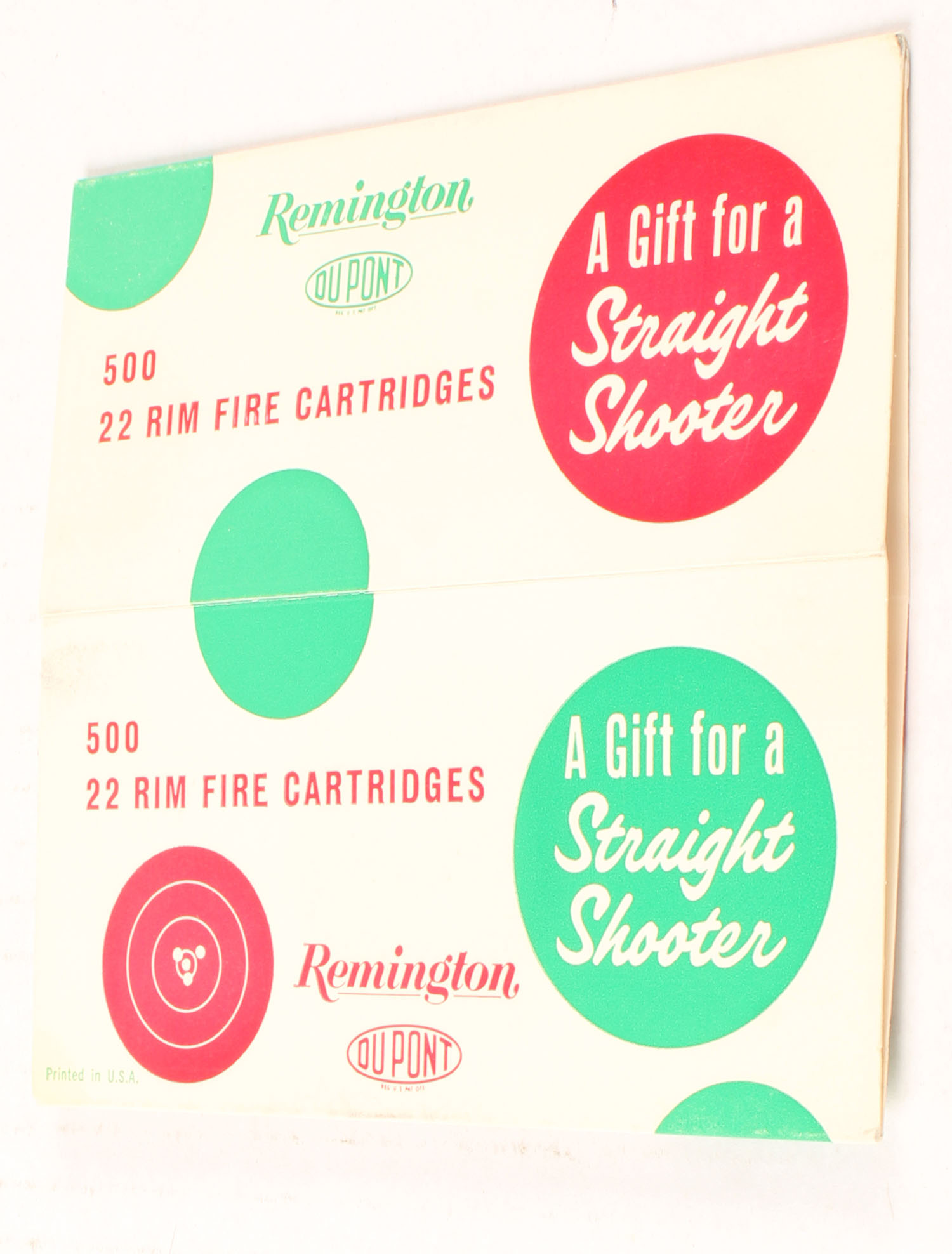 Remington, A Gift for a Straight Shooter, New old stock Christmas sleeve for .22 bricks, sleeve is near mint with minty color, only very minor edge wear. Grade: Excellent ++ - Value: 60 to 90