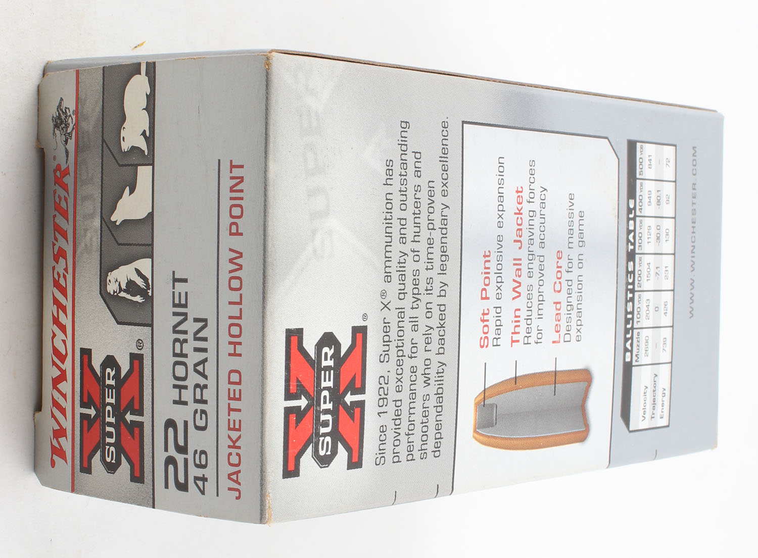 | Winchester, Super-X, .22 Hornet, 46 Grain JHP, Full, 1pc. Gray ...