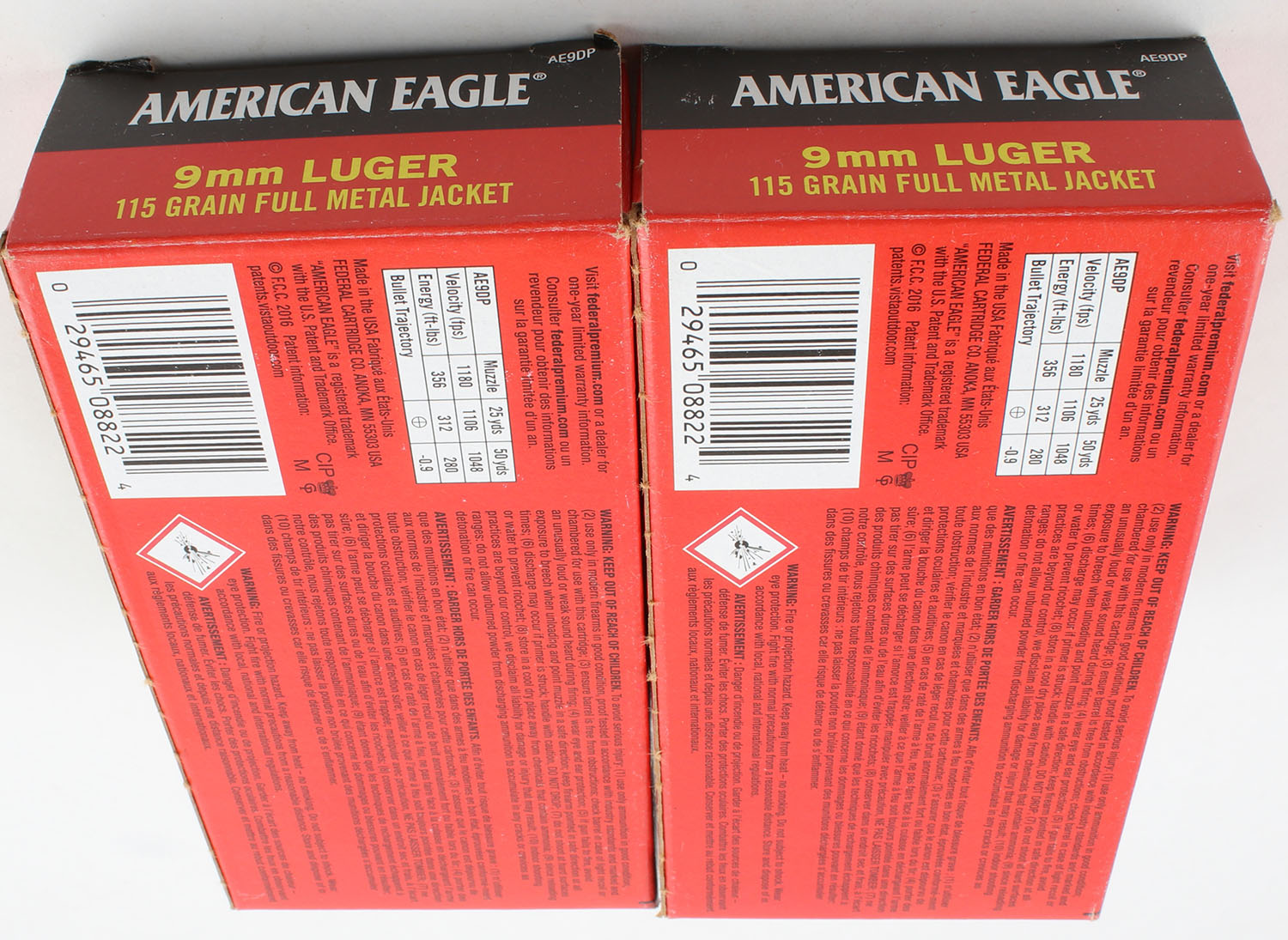 | Federal, Lot of (2), American Eagle, 9mm Luger, 115 Grain FMJ, F...