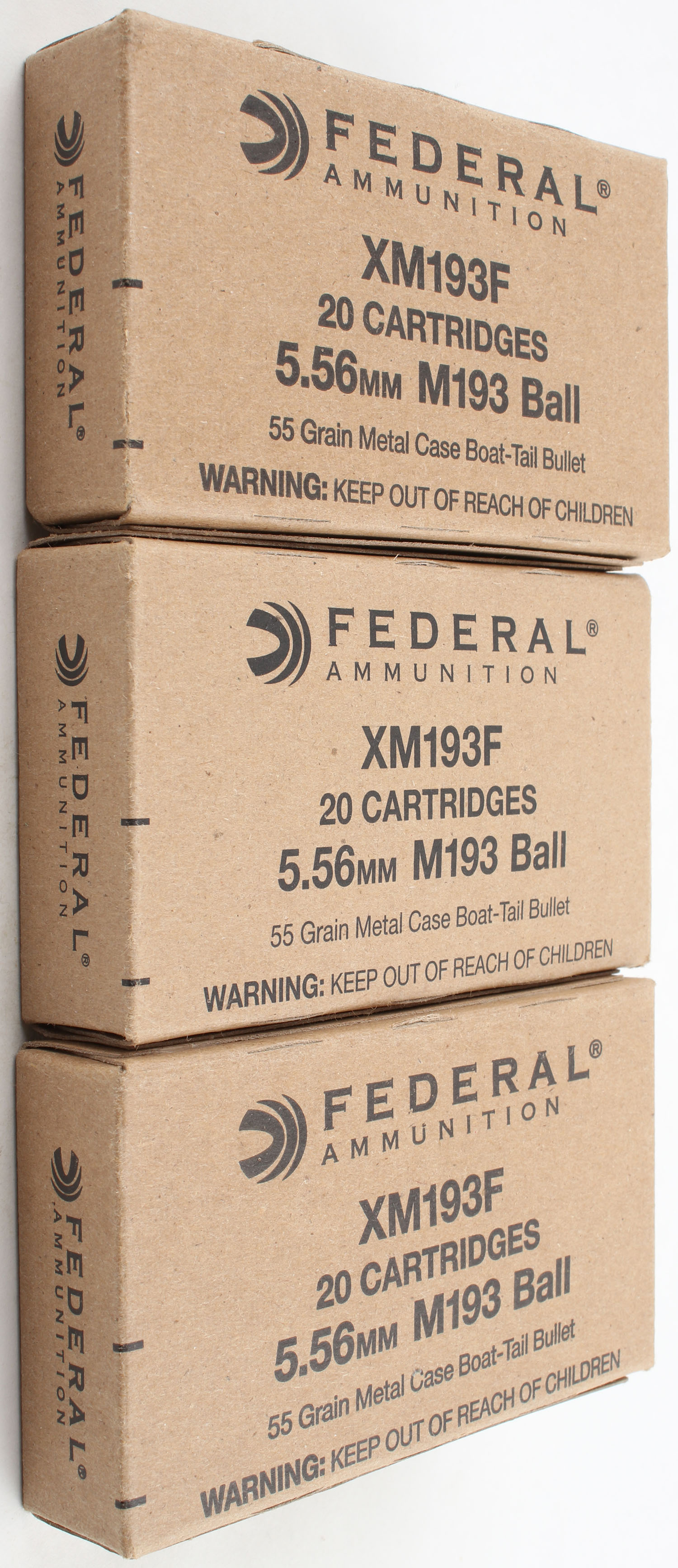 | Federal, Lot of (3), 5.56mm M193 Ball, 55 Grain Metal Case Boat-...