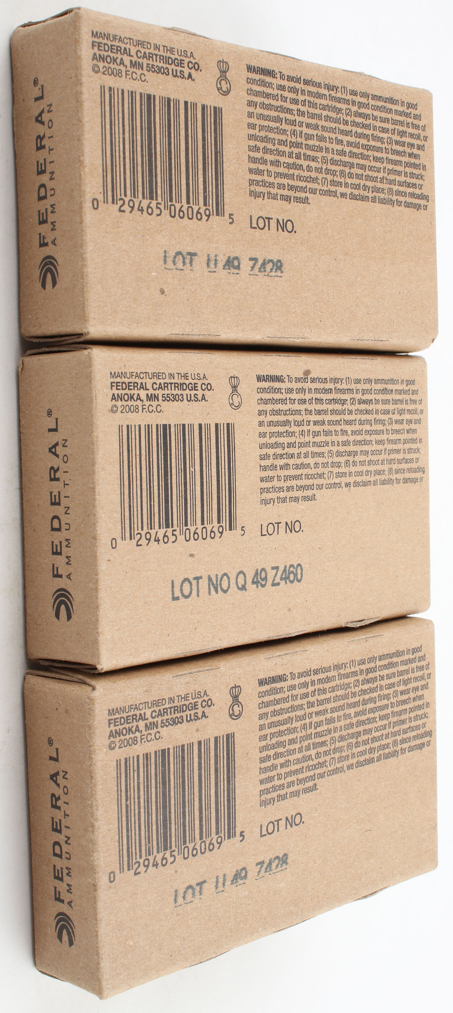 Federal, Lot of (3), 5.56mm M193 Ball, 55 Grain Metal Case Boat-Tail Bullet, FULL & SEALED, 1pc, buff box with black print, boxes are very solid. Grade: Excellent ++ - Value: 16 to 40