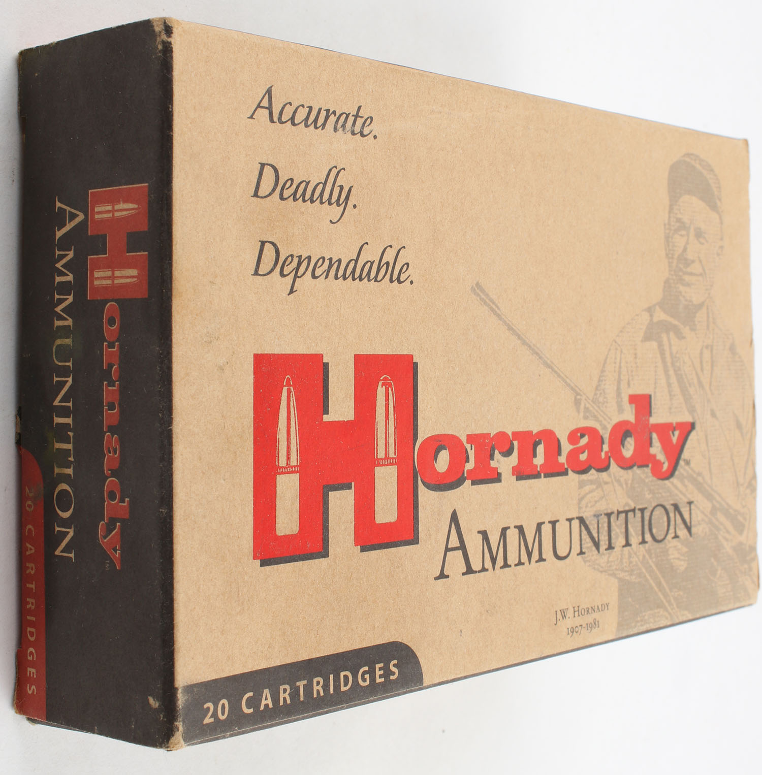 Hornady, Heavy Mag, .338 Winchester Mag., 225 Grain SP, Full of mixed ammo, 1pc. Multi-colored box, box is very solid with good color, end flaps are solid, ammo is very good. Grade: Very Good ++ - Value: 20 to 50