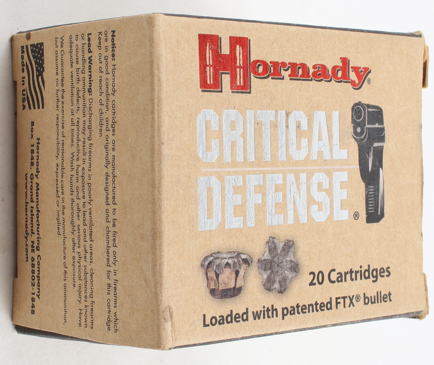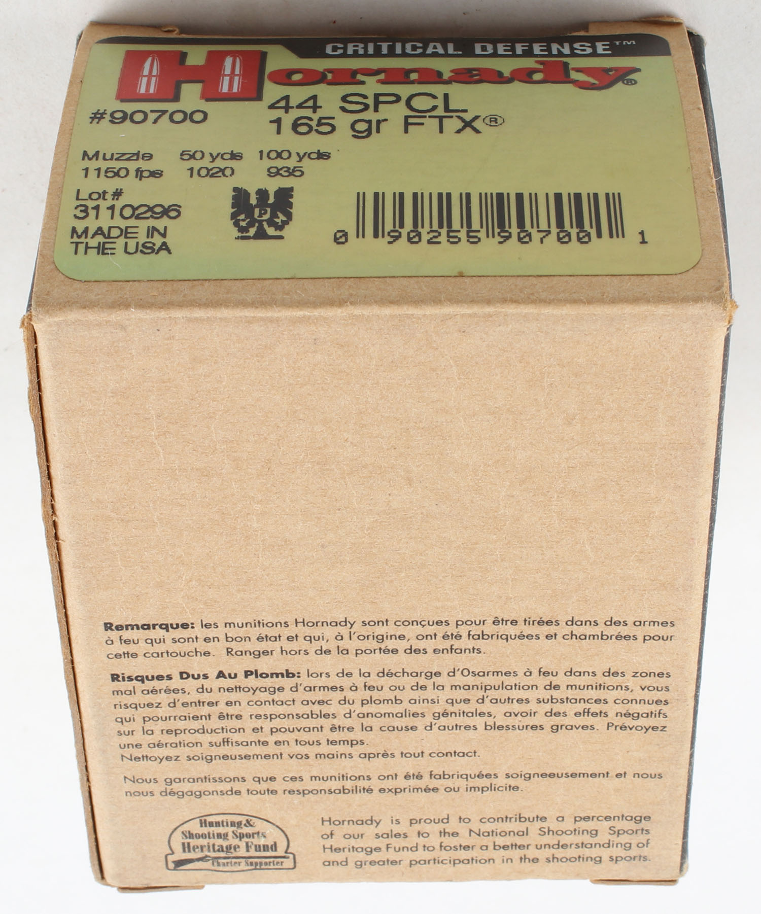 Hornady, Critical Defense, .44 Smith & Wesson Special, 165 Grain FTX, Full, 1pc. Multi-colored box, box is very solid with excellent color, ammo is mint. Grade: Excellent ++ - Value: 10 to 40