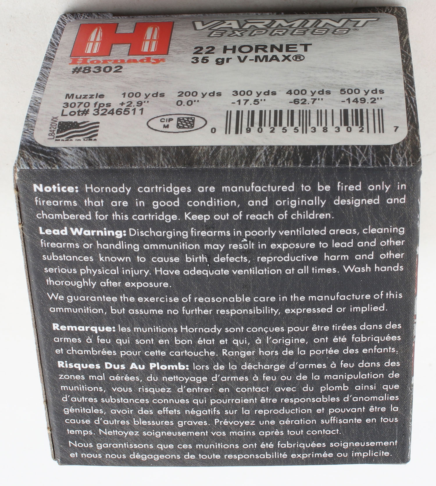 Hornady, Varmint Express, 22 Hornet, 35 Grain V-Max, Full, 1pc. multi-colored box, box is MINT with minty color, Ammo is mint. Grade: MINT - Value: 30 to 45